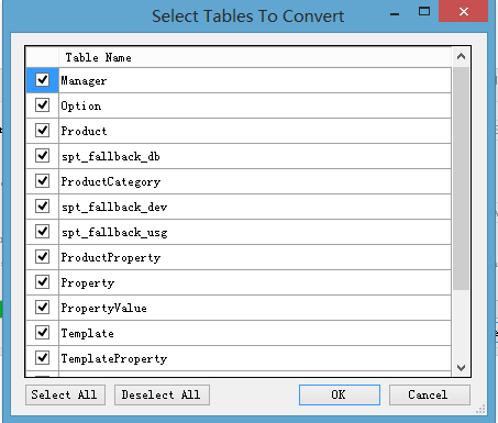接下来转换数据库只需点击 Start The Conversion Process 即可 弹出选择框,选择需要转换表,点击OK